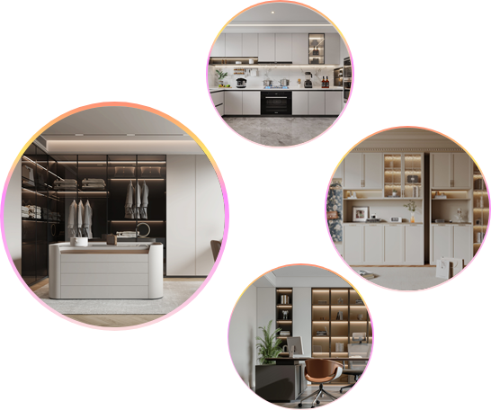 包含橱柜,衣柜、套装门,护墙板等多样产品,系列丰富、花色繁多,可满足